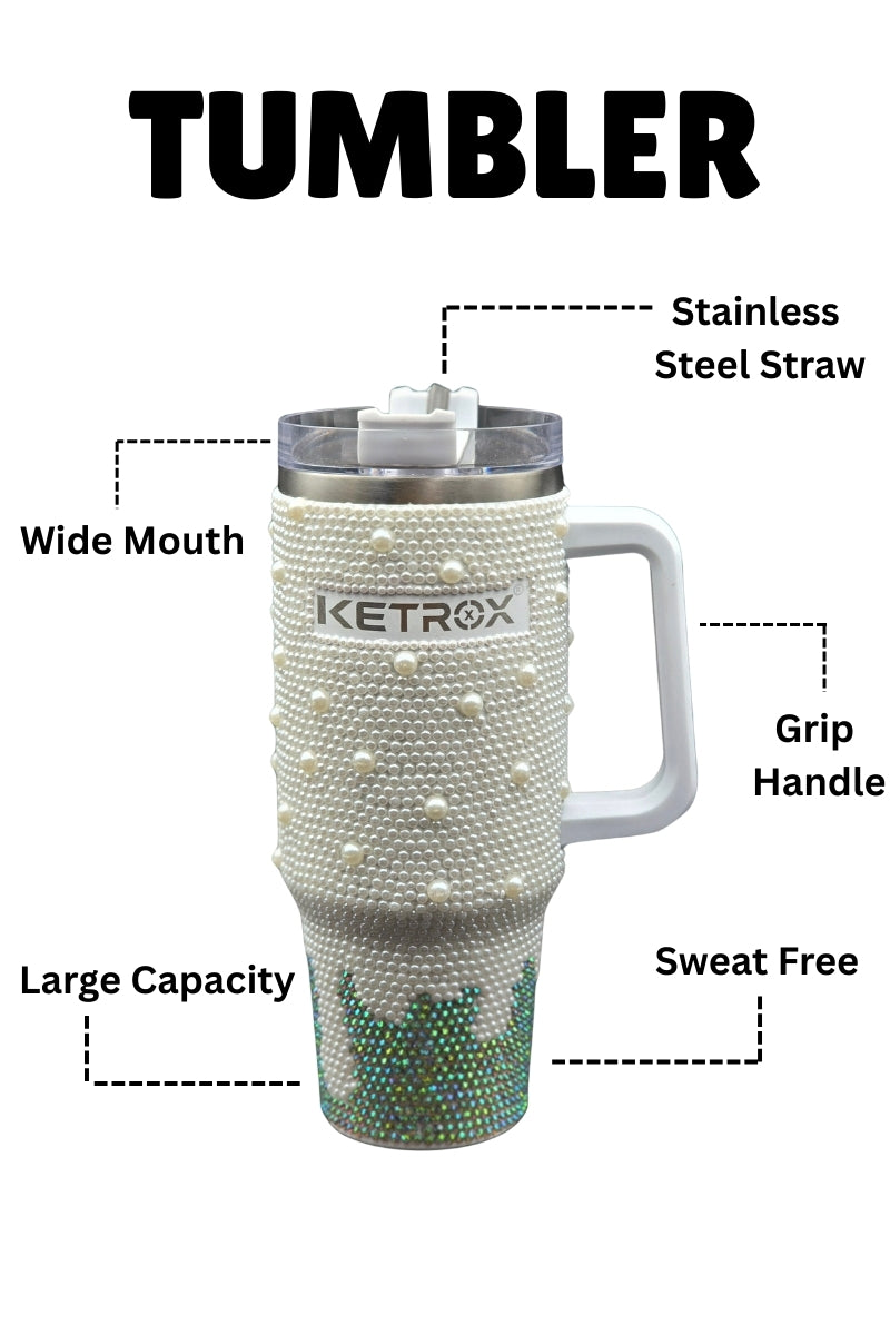 Sip in elegance with the KETROX Pearl & Crystal Customized Tumbler 💎✨.