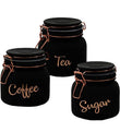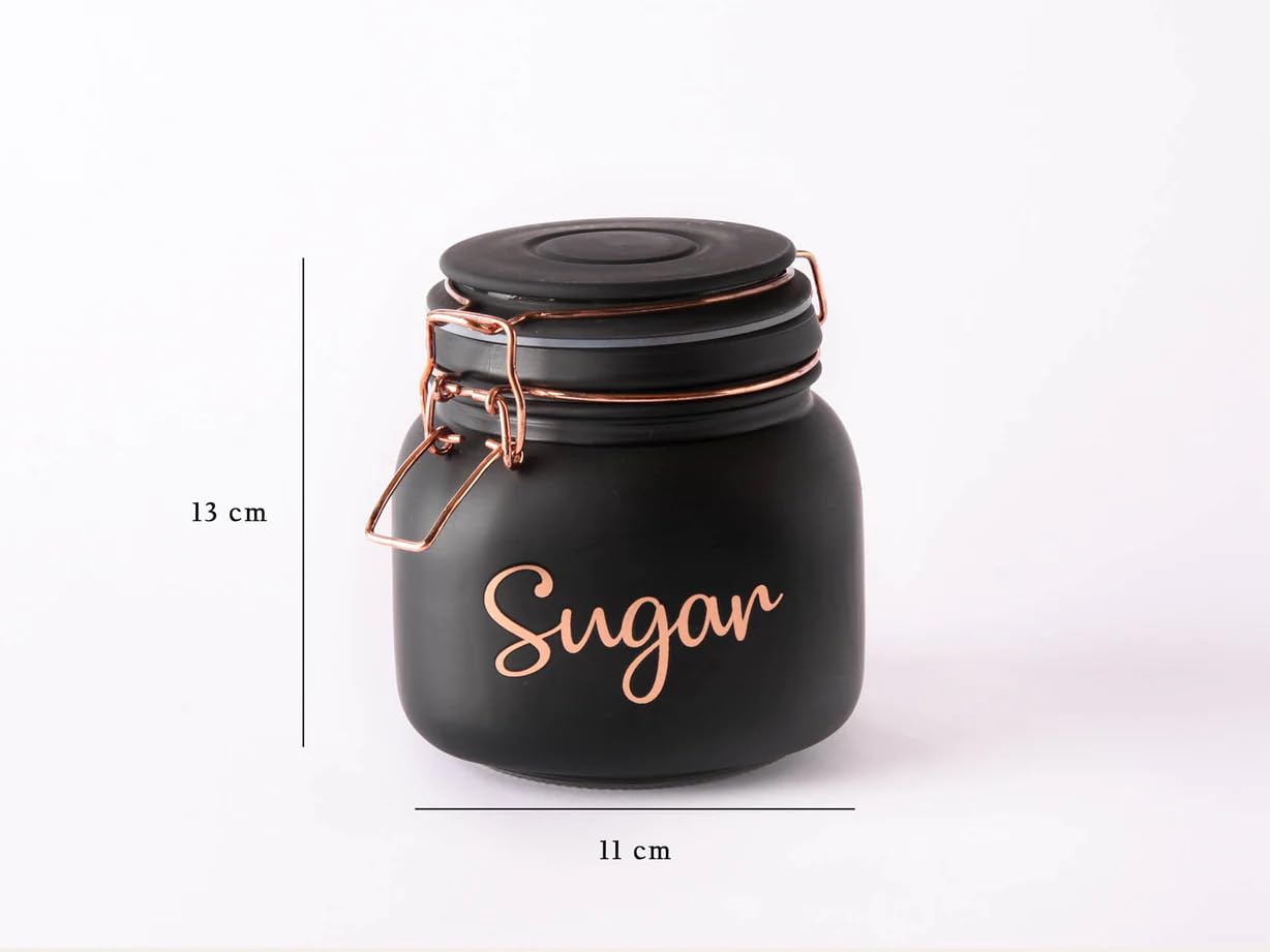 Glass Airtight tea coffee sugar containers for Kitchen Storage Container with Lid For Tea Coffee & Sugar, Dry Fruit jars, Storage Box, 900ml Set of 3 ,(BLACK)