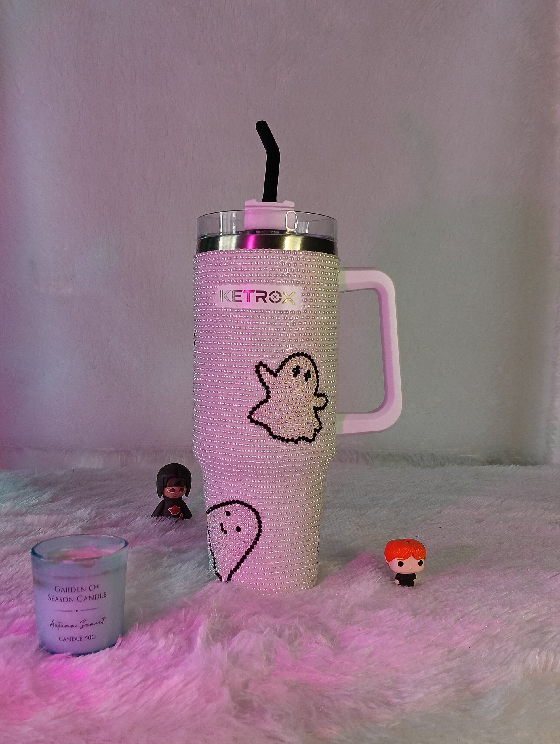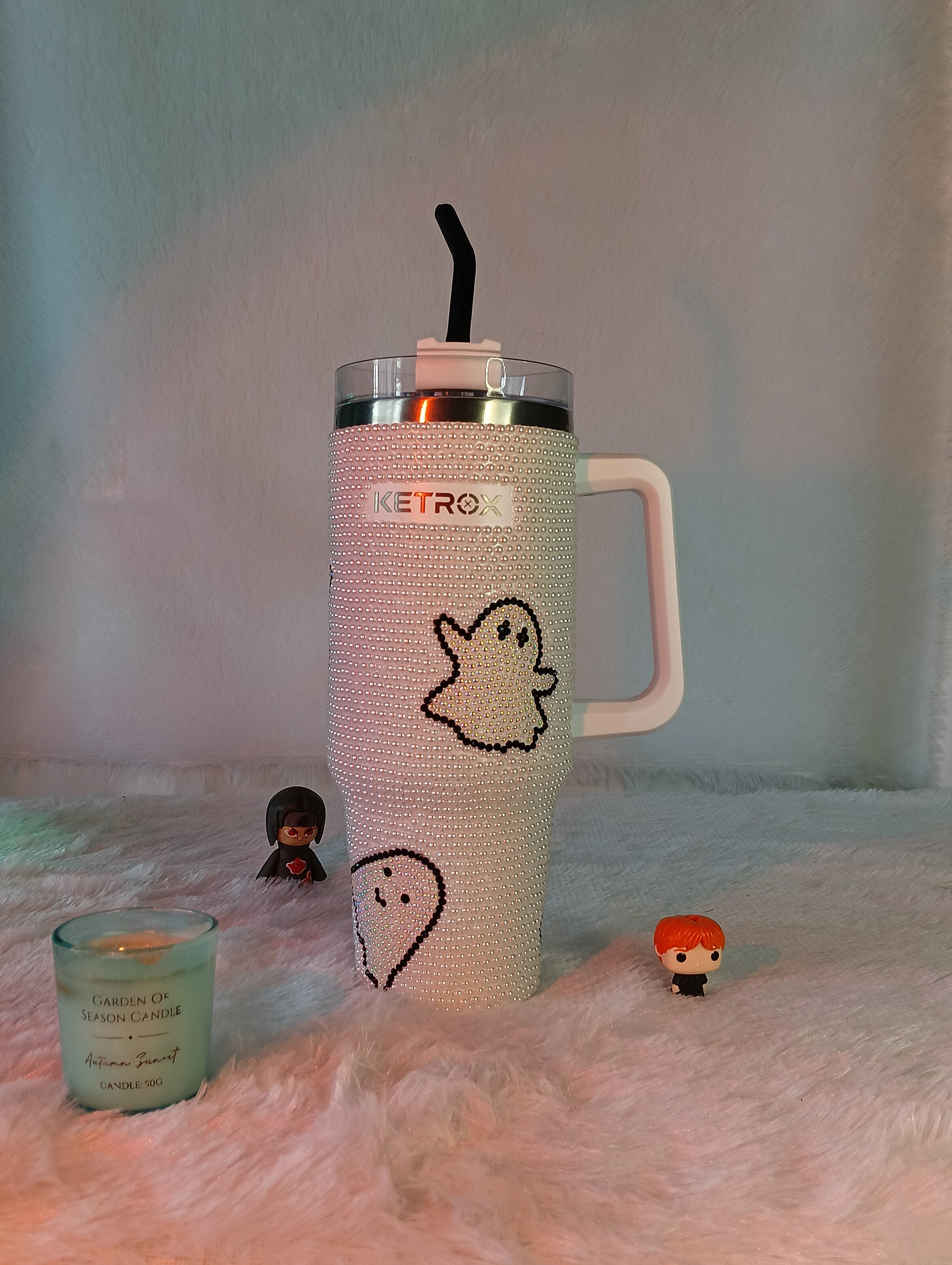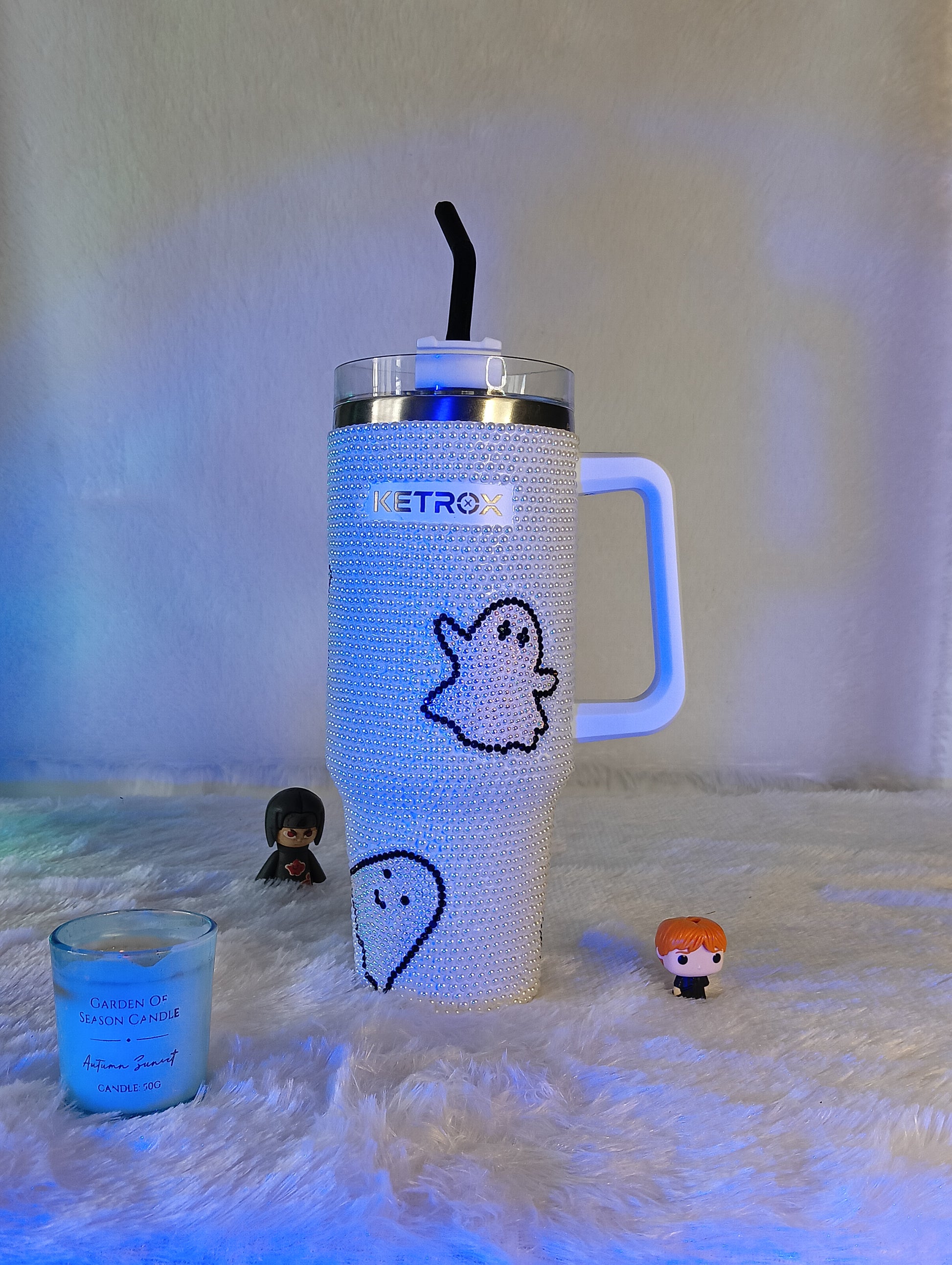 Sip in elegance with the KETROX Ghost Bling Customized Tumbler