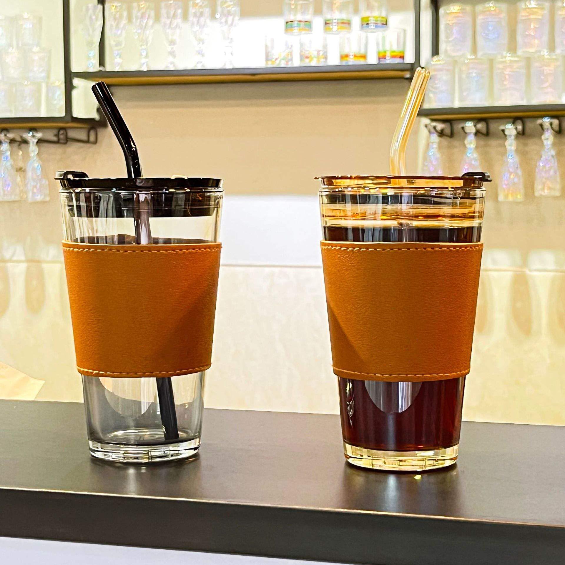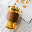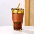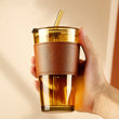 Premium Glass Coffee Mug With Glass Straw And Leather Sleeve